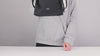 The bag is crafted from a performance fabric designed to resist moisture. As shown in the close-ups, water droplets bead up on the surface rather than soaking in, offering protection for your belongings against light rain or spills.